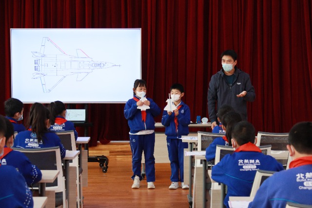 學校教師王楠帶來航模課《隱身戰機設計師》。學校供圖