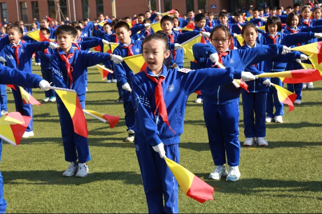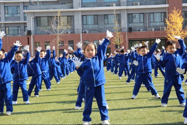 活動中,學校教師王楠通過隱身戰機的設計,引導孩子發現并解決問題,并結合動手操作,提升學生的認知和思考,促進學生應用能力的提升。在學生科技綜合實踐活動環節中,展示了“海”——帆船競速賽,“陸”——無人機穿越飛行,“空”——氣壓動力飛機、海空衛士艦載機、回旋飛機等“海陸空”三位一體的國防科技教育體系。此外,學校還設計并打造了科技長廊,將國防教育浸潤于學生的日常生活。學校體育教師還將國防教育與體育運動相結合,創編了系列國防健身操。