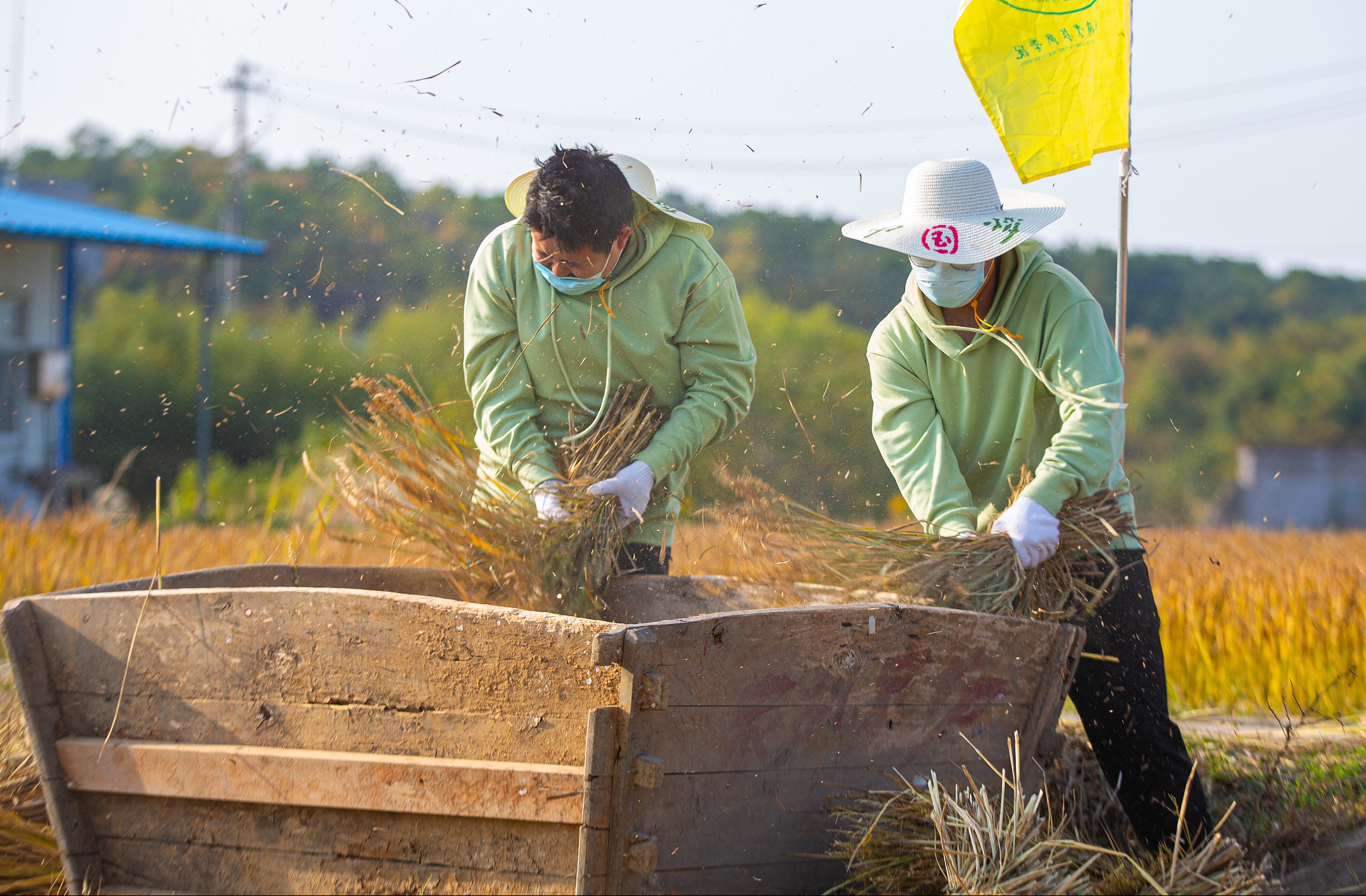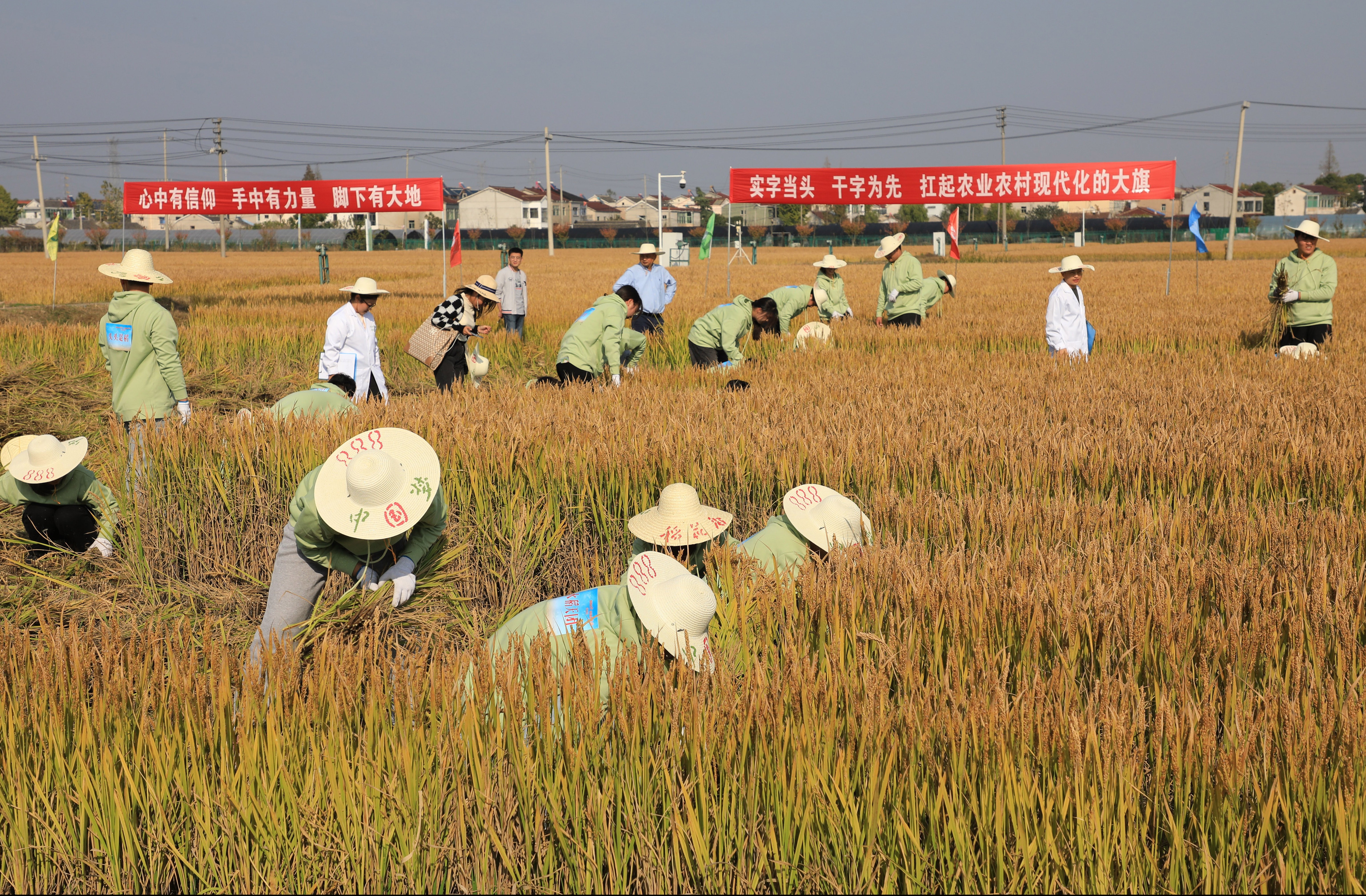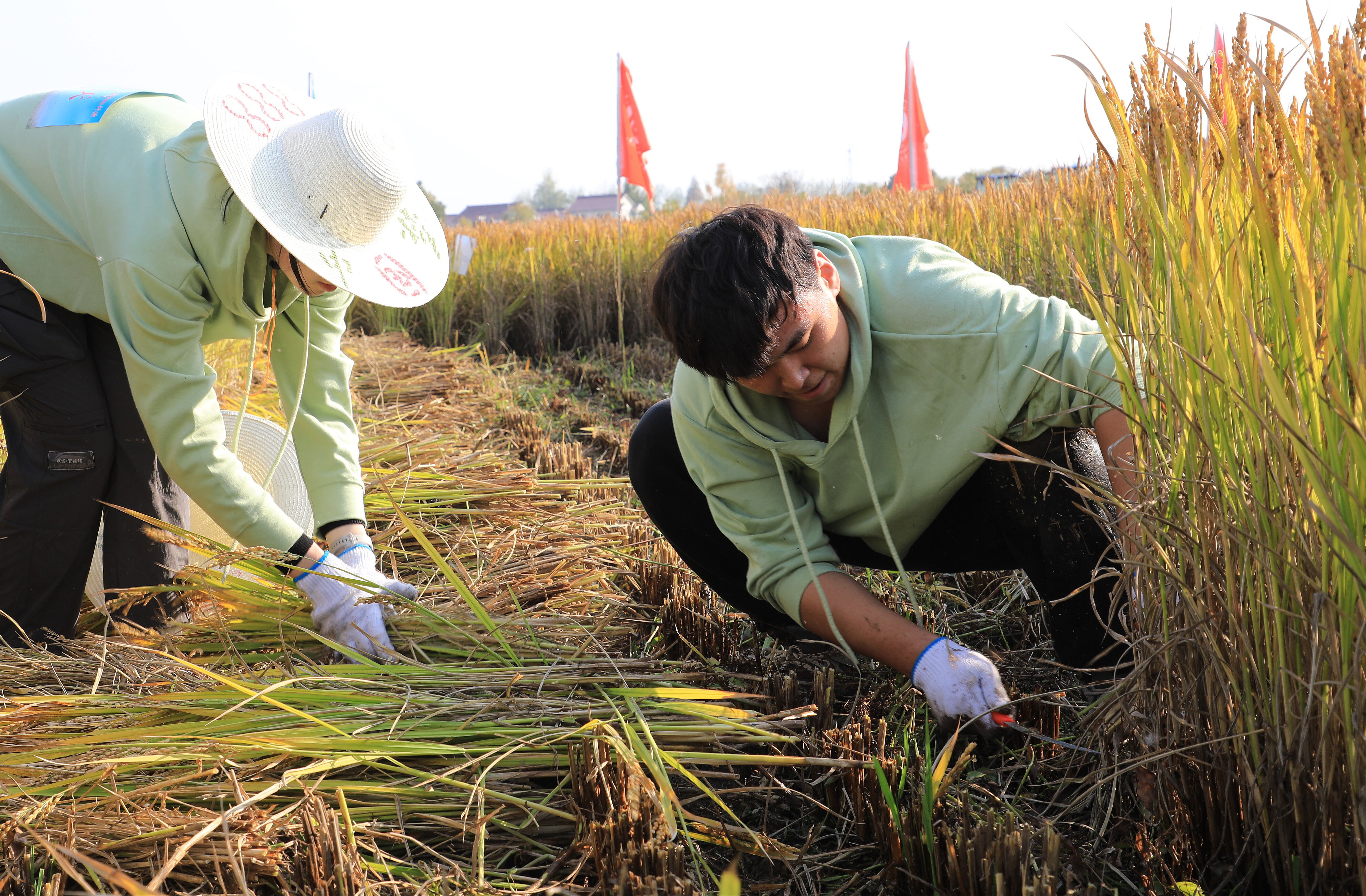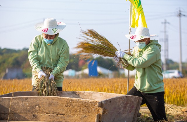 隨后,農忙收割比賽拉開帷幕。同學們共分成7個代表隊,在講解示范完割稻子的過程、握鐮刀的方法及注意事項后,大家手揮鐮刀、分工協作,開始下田割稻及打谷。雖然動作生疏,過程辛苦,但是大家臉上都洋溢著收獲的喜悅。