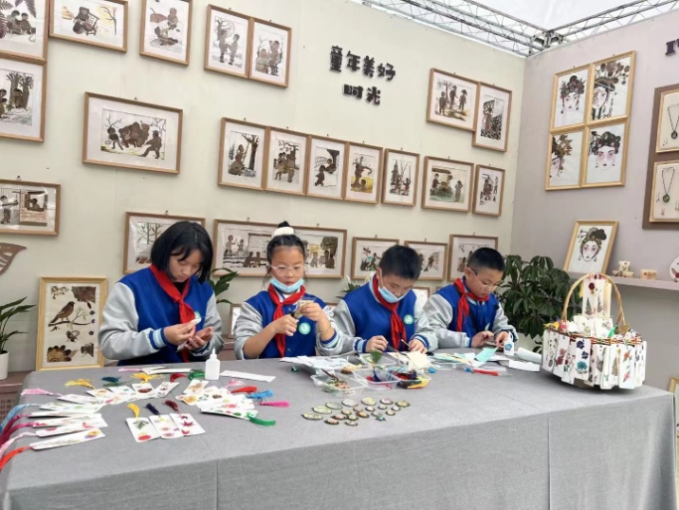 “伴隨特色藝術課程實踐,學生作品漸漸布滿了學校的廊道角落,水到渠成地形成了學校的藝術特色,為每一所參與學校增添了亮點。”蔣沛杉說。