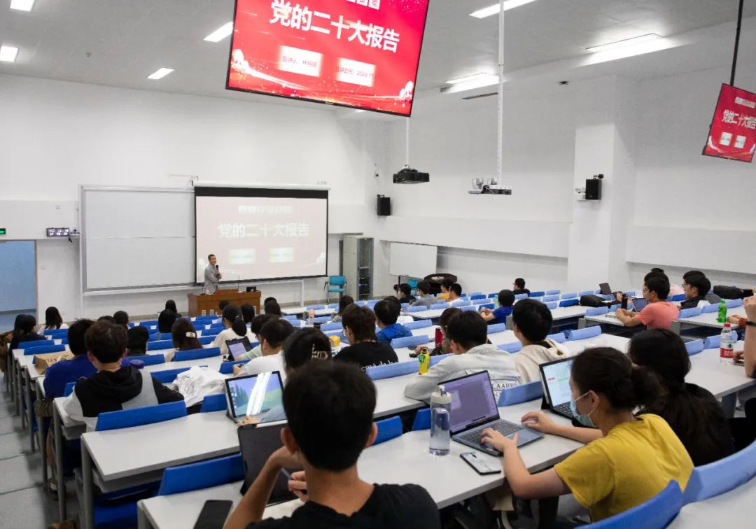 同學們認真聆聽關于大會主題、報告內容的詳細解讀,重點學習黨的二十大報告中關于“實施科教興國戰略,強化現代化建設人才支撐”的重要論述,領會教育、科技、人才對于全面建設社會主義現代化國家的基礎性、戰略性支撐作用。