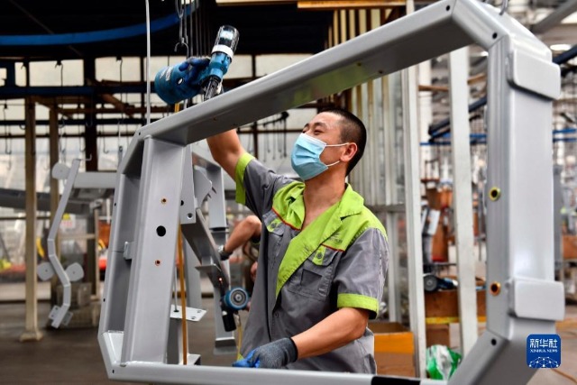 在山東羅賽羅德健康產業有限公司,工作人員在加工健身器材(2022年6月1日攝)。新華社記者 郭緒雷 攝