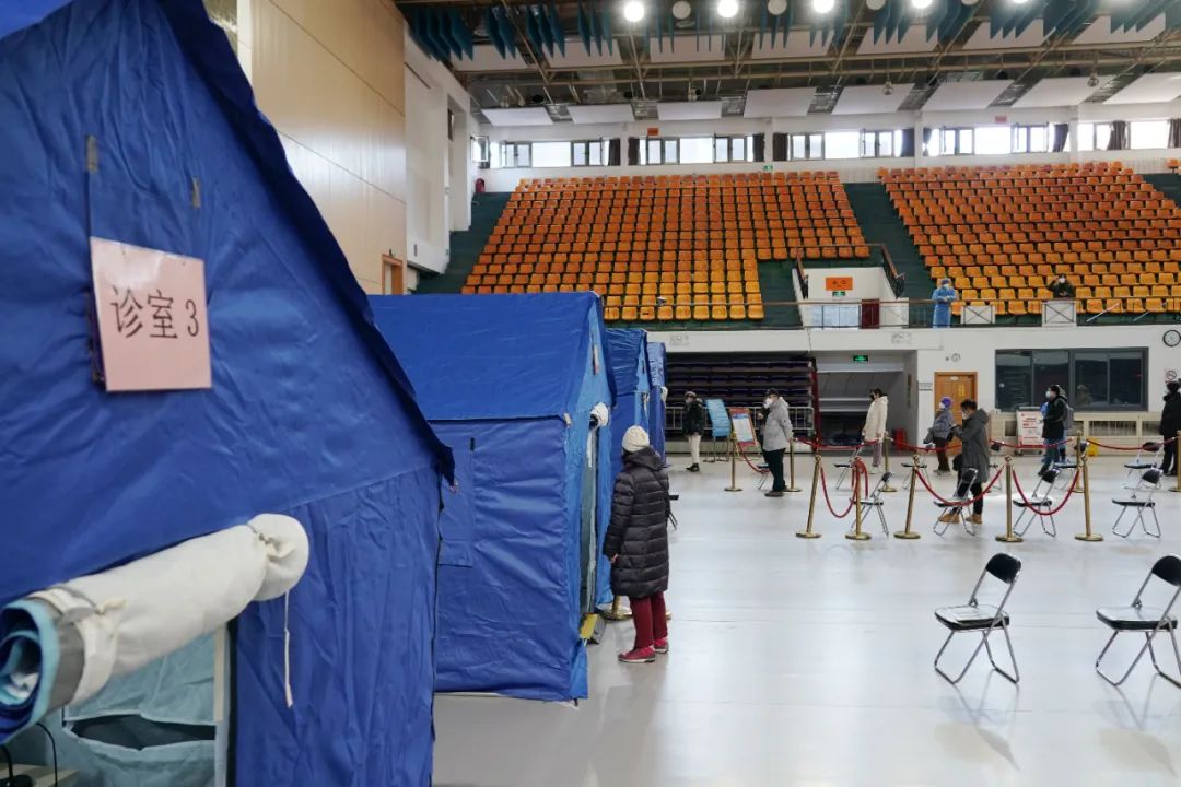 這是2022年12月24日拍攝的北京市西城區廣安體育館簡易發熱門診。新華社記者 張晨霖 攝