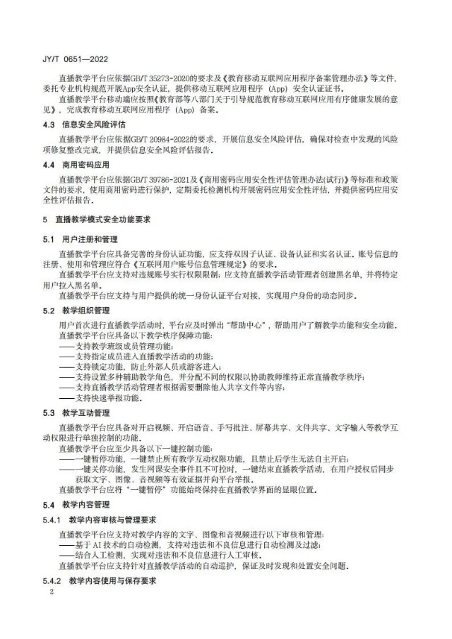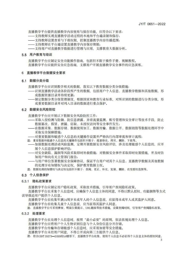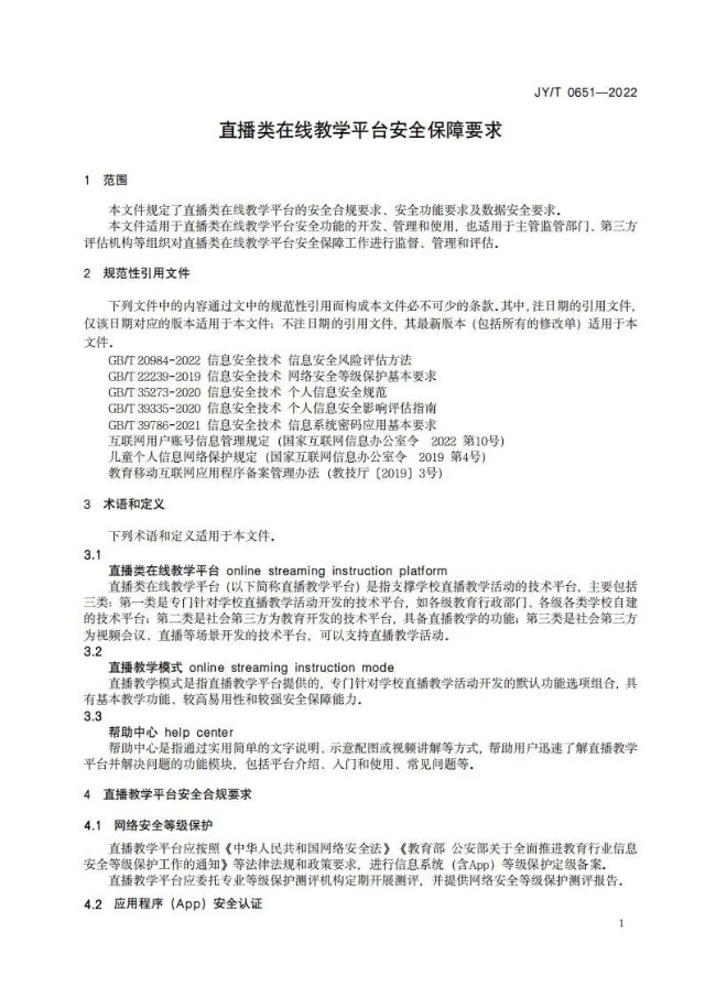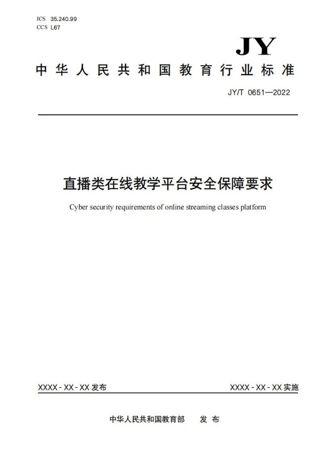 日前,教育部研究制定《直播類在線教學平臺安全保障要求》,規定了直播類在線教學平臺的安全合規要求、安全功能要求及數據安全要求,并作為教育行業標準予以發布。