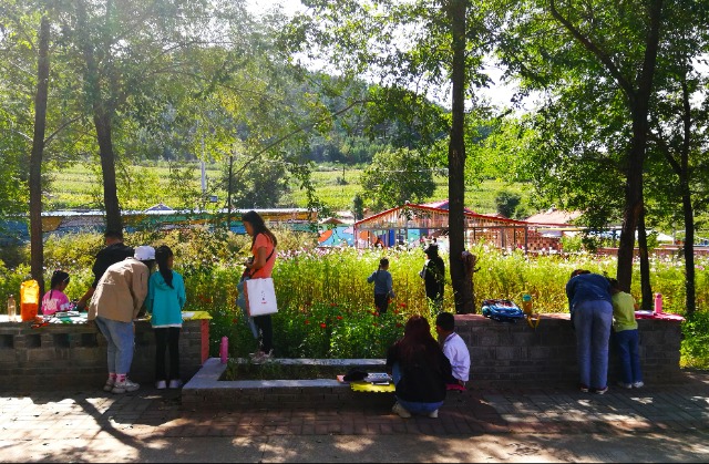 節假日,城里人帶著孩子到銀里村觀光游玩,畫畫寫生。