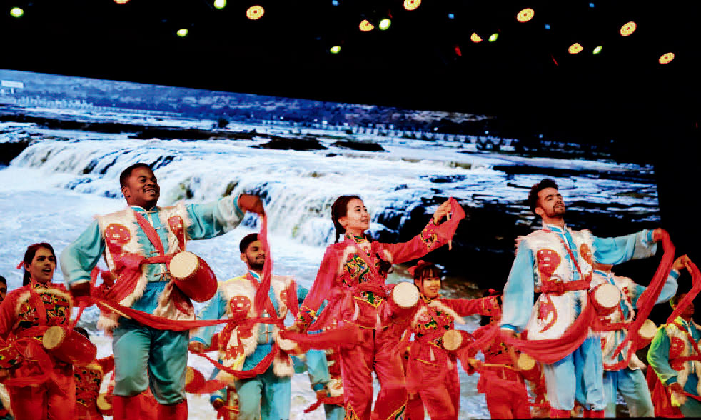 2018年12月,陜西省留學(xué)生新年晚會(huì)在西安交通大學(xué)憲梓堂舉行,圖為《歡慶腰鼓》表演