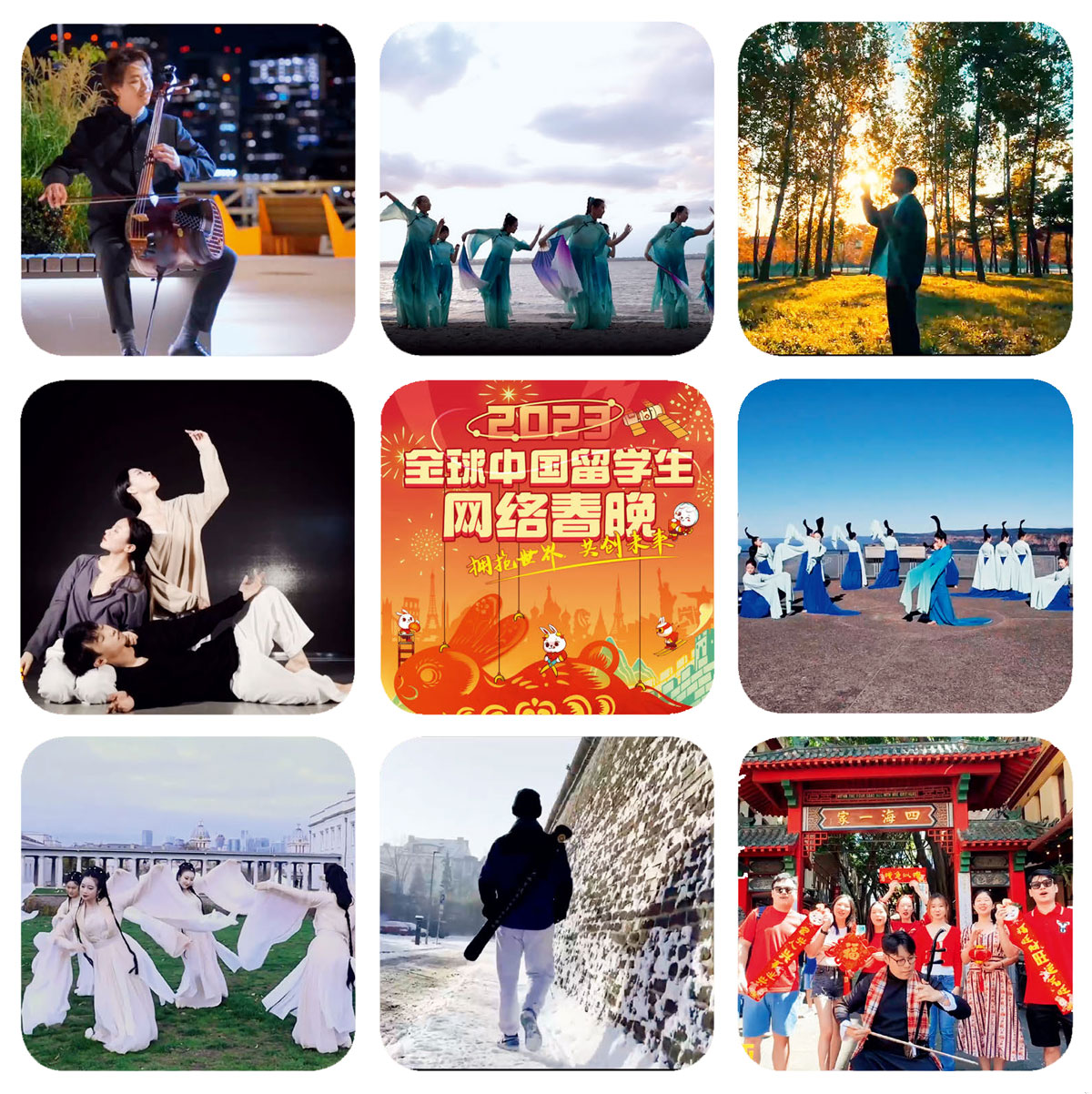 全球中國留學生合唱《相親相愛》。活動由英國皇家藝術學院畢業生吳尚發起,后在“全球春晚”團隊指導下,于1月5日開始籌備制作成全球中國留學生共創節目,最終有12個國家的中國留學生參與其中
