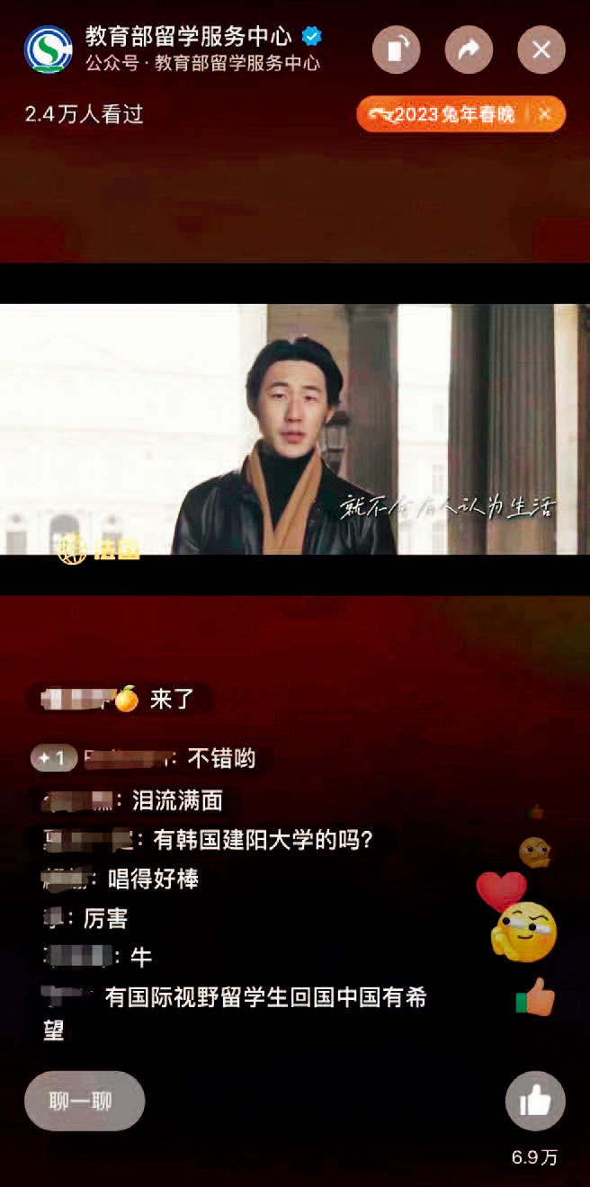 最后,緊跟潮流,努力貼近年輕人的喜好。網絡紅人、英國牛津大學博士生潘周聃學長的開場白,爆款舞蹈《只此青綠》獻禮祖國,兔年諧音梗拜年,“奈思兔”專屬表情包周邊,《英雄聯盟》主題曲《宿敵》……都引發了評論區熱烈的討論。作為獻給年輕人的晚會,“全球春晚”力爭把握年輕人的潮流脈搏,貼近年輕人的日常生活,尋找、創作他們喜聞樂見的節目。“節目設計很有水平。”“我覺得都是我們年輕人愛看的。”一條條評論回應著創作團隊的努力與嘗試。