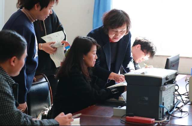 唐景麗和老師在一起進行教學研討
