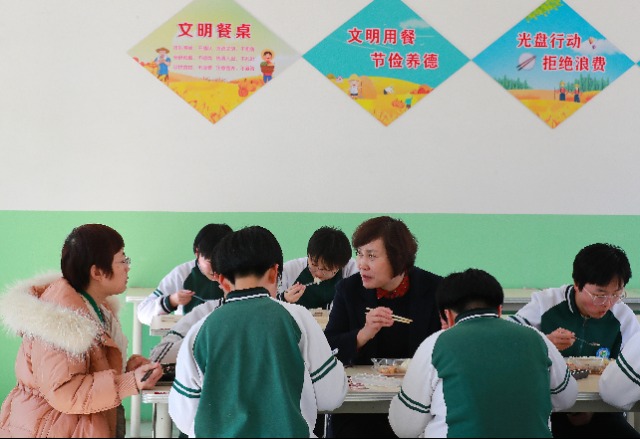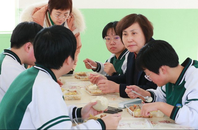 唐景麗借陪餐時間向學生征求對學校后勤保障工作的意見建議
