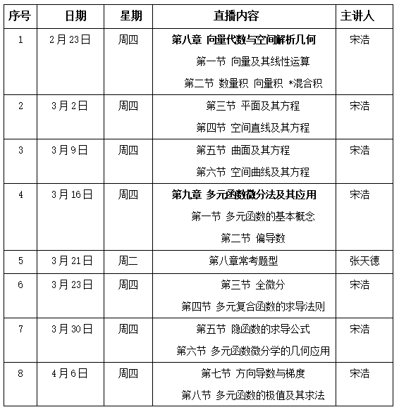 不用擔心,3月9日19:00-21:00,宋浩老師主講的“高數(下)習題課”第三期,將帶大家一起探索空間解析幾何的奧秘,逐一擊破難點。準備好觀看直播,一起夯實高數基礎、搭建課程知識體系、提升高數解題能力!