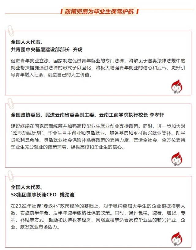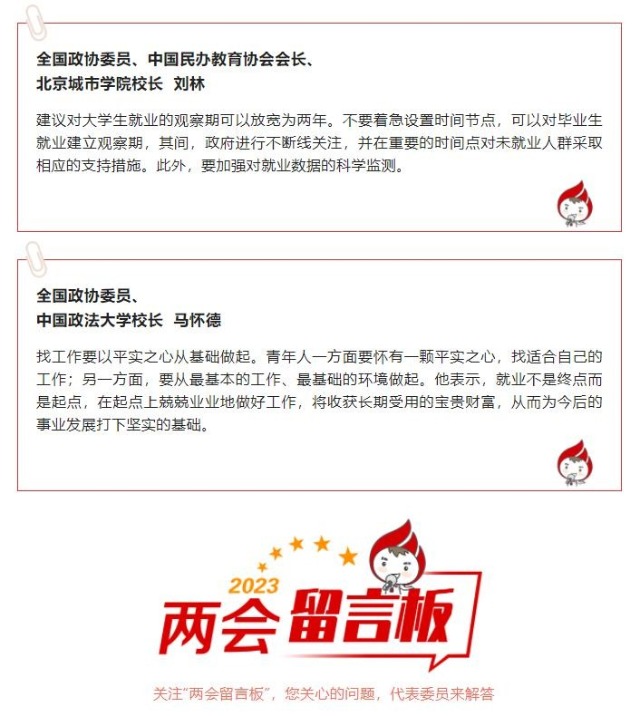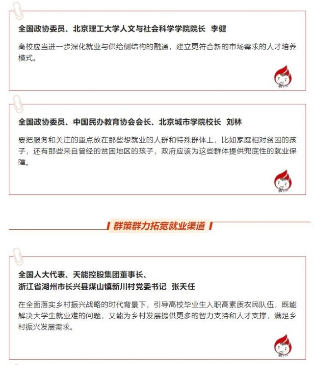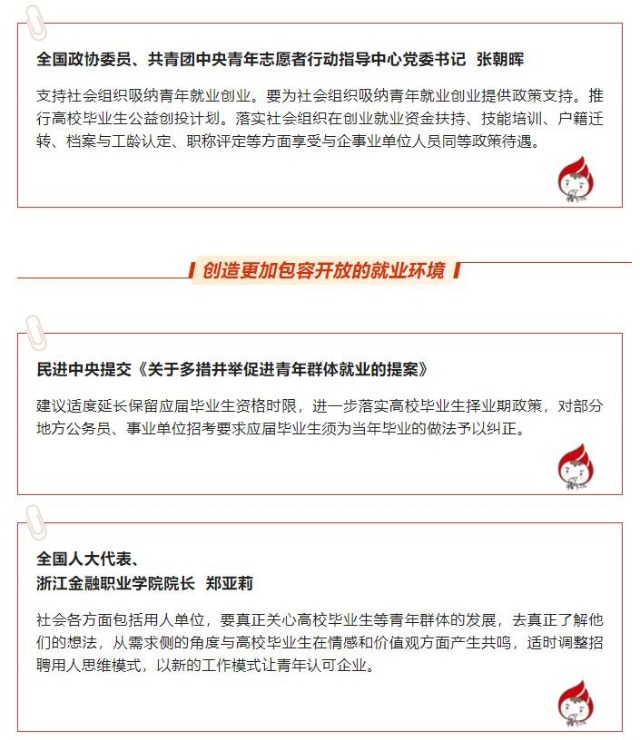 針對(duì)高校畢業(yè)生們的問(wèn)題,代表們給出了建議: