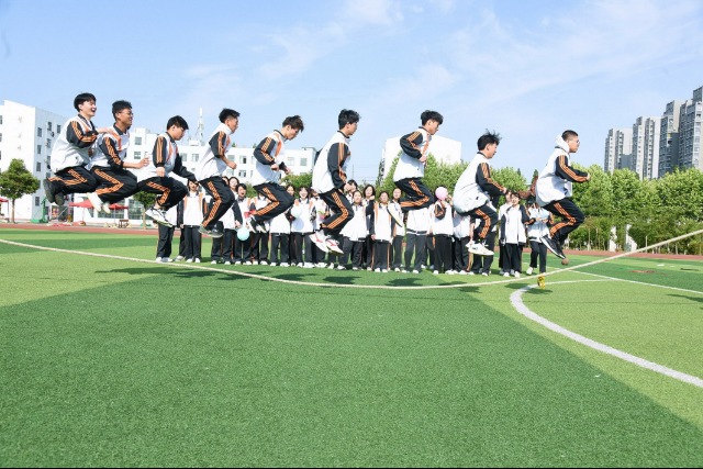 江蘇省連云港市東海縣第二中學(xué)高三學(xué)生在跳繩游戲中放松心情、釋放壓力。張玲 攝