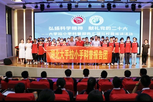 湖北省科學技術協會的下屬單位湖北省青少年科技中心自2012年至2021年連續9年組織開展大手拉小手科普報告活動,足跡遍布省內15個市州,共舉辦651場科普報告會,惠及師生達30萬人次。2020年更創新開展線上科普報告會,點擊量達121萬人次。近年來,在落實“雙減”工作的背景下,為深入貫徹落實《全民科學素質行動規劃綱要(2021-2035年)》《教育部辦公廳、中國科協辦公廳關于利用科普資源助推“雙減”工作的通知》,湖北省科協發布了《關于成立“湖北大手拉小手科普報告團”的通知》,我有幸被推薦擔任報告團團長。2022年,我與青少年科技中心的領導和工作人員一起,積極開展大手拉小手科普報告希望行、大手拉小手科普報告荊楚行等活動,推動了“雙減”后豐富青少年科教活動的落地見效?;顒又?,我們組織院士專家,特別是留學歸國的中青年才俊一起,在湖北省的中小學作了近百場科普報告。報告選題緊跟時代主題,如“逐夢空天”“不忘初心啟迪未來——讓五星紅旗在南極高高飄揚”“旗開月表五星閃耀”“從游戲到諾貝爾獎——納米材料之王石墨烯的秘密”“自然資源與日常生活”等,報告內容精彩紛呈、妙趣橫生、通俗易懂,深受青少年喜愛。廣大中小學生在這些科普活動中收獲了知識和快樂,培養了科學思維,提升了觀察能力、動手能力和創新能力,更激發了他們積極參與各項科普活動的熱情。