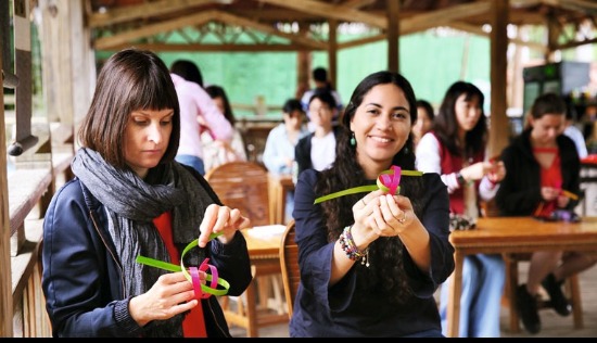 “國際青年中國行”活動四川站,青年們在蜀南竹海體驗非物質文化遺產竹編 圖|CCG