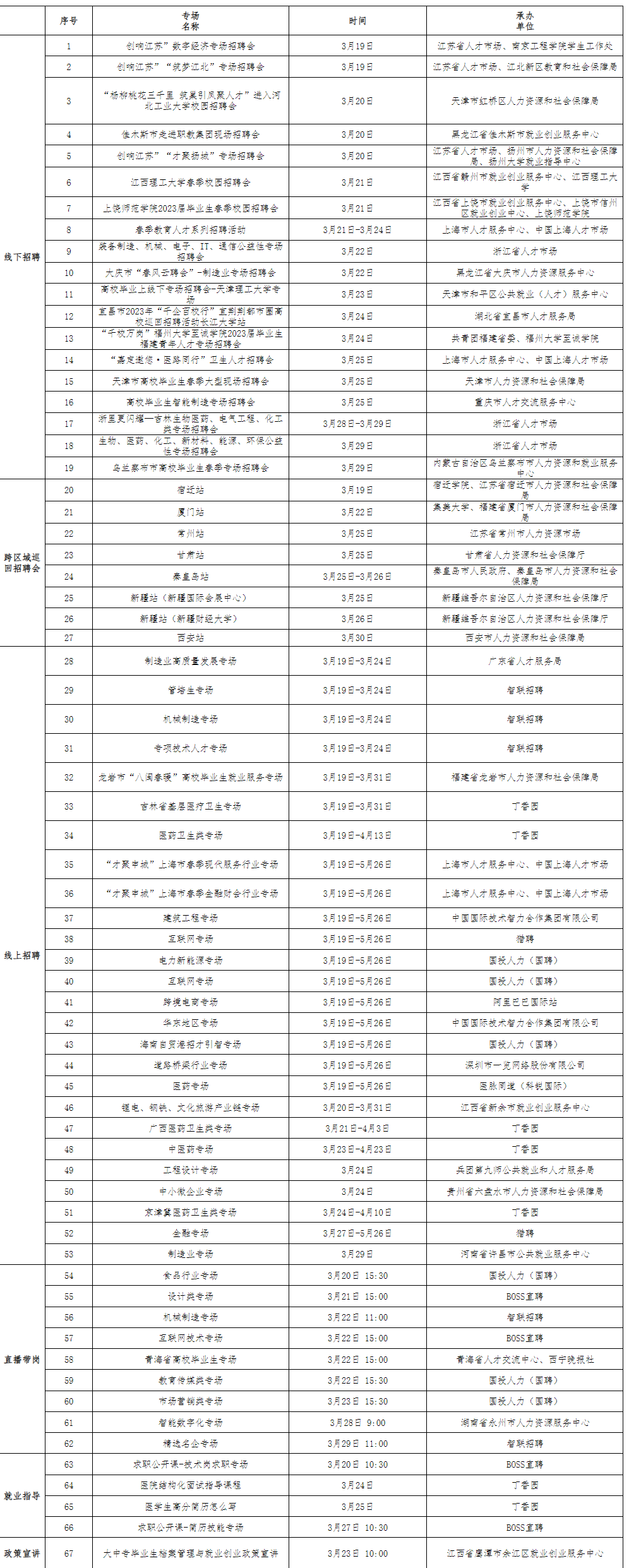 2023年大中城市聯(lián)合招聘高校畢業(yè)生春季專場(chǎng)活動(dòng),首期推出67場(chǎng)特色服務(wù)活動(dòng)。來(lái)源:人社部網(wǎng)站
