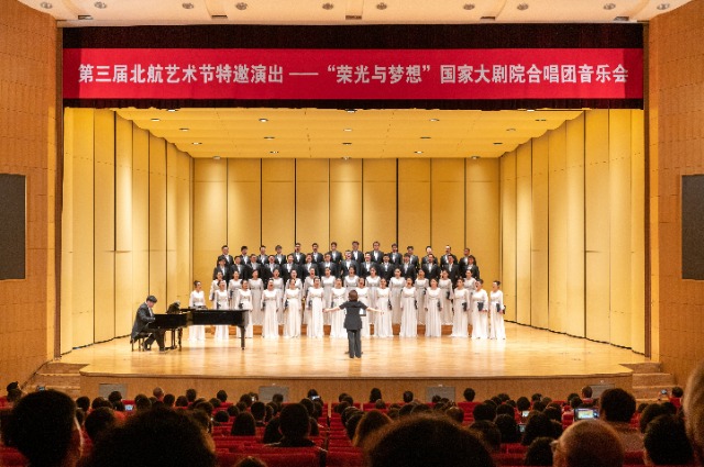 中國教育報-中國教育新聞網訊(記者 梁丹)為豐富學校文化供給,營造濃厚文化氛圍,提升師生文化藝術素養,3月30日晚,第三屆北京航空航天大學(以下簡稱“北航”)藝術節特邀演出——“榮光與夢想”國家大劇院合唱團音樂會在北航晨興音樂廳上演。