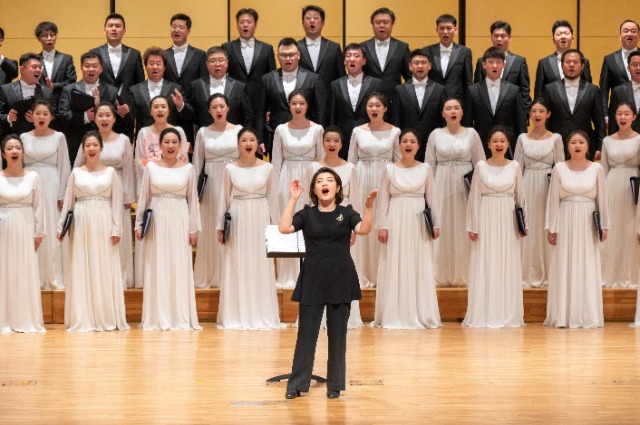 音樂會以《唱支山歌給黨聽》作為開場曲目,有從《這世界那么多人》《傳奇》等流行金曲改編而來的合唱作品,還有《新時代歌謠》《領航》《燈火里的中國》等國家大劇院合唱團編排創作的最新作品。返場曲目《我和我的祖國》《歌唱祖國》,更是將現場氣氛推向高潮。