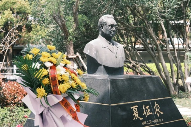上海東海職業技術學院舉行老校長夏征農銅像祭掃儀式 學校供圖