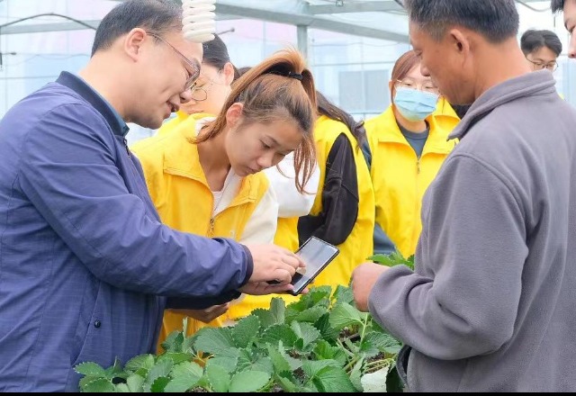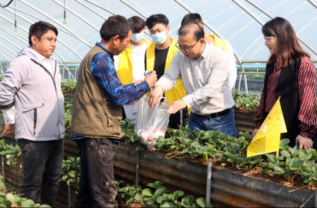 江蘇農林職業技術學院草莓科技創新團隊在推廣草莓生物防治技術。