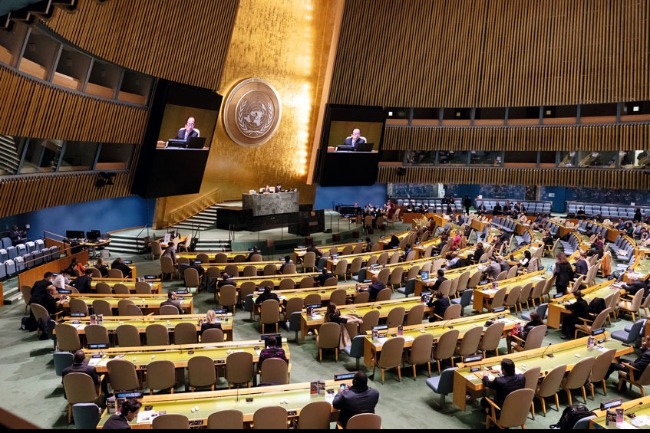 2022年11月15日,第77屆聯合國大會全會舉行聯合國上訴法庭和爭議法庭法官選舉。高曉力、孫祥壯分別當選聯合國上訴法庭、聯合國爭議法庭法官 新華社發(聯合國供圖/洛伊斯·費利普攝)