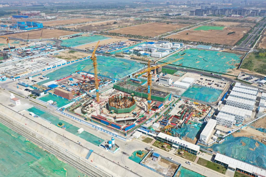 位于雄安新區啟動區的中國中化雄安總部001大廈項目現場(2023年5月9日攝,無人機照片)。新華社記者 朱旭東 攝