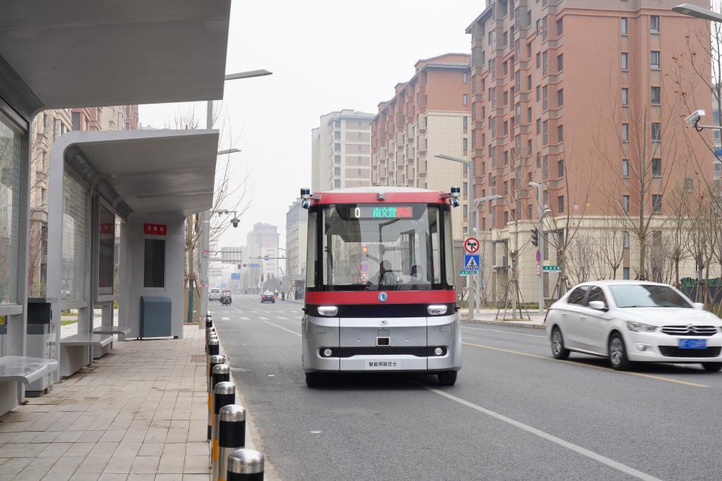 智能網聯巴士901線測試車在河北雄安新區容東片區道路上行駛(2023年3月20日攝)。新華社記者 牟宇 攝