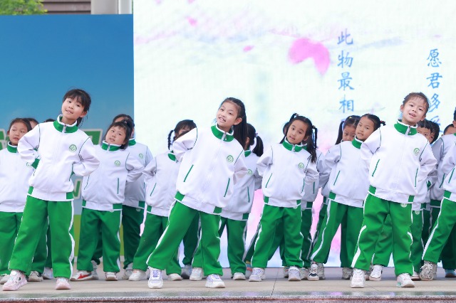 近日,北京市海淀區翠微小學大興分校一年級學生在家長開放日活動中進行風采展示。學校供圖