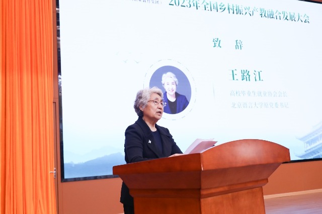 高校畢業生就業協會會長、北京語言大學原黨委書記王路江在大會上致辭。主辦方供圖