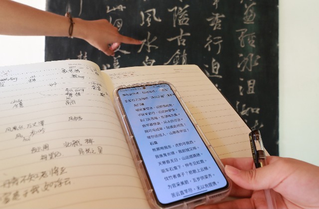學(xué)生翻出手機(jī),和碑文上的詩詞來一場穿越千年的“對(duì)話”。