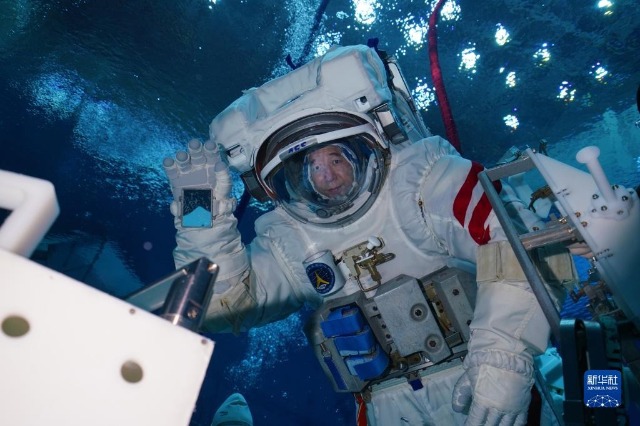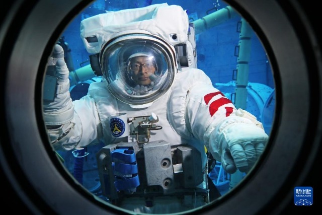 神舟十六號航天員在進行水下訓練(2022年9月14日攝)。新華社發(徐部 攝)