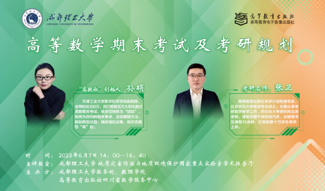 中國教育新聞網訊(記者 焦小新)6月7日,高等教育出版社(以下簡稱“高教社”)“高教伴你學 專家進校園”活動走進成都理工大學。活動聚焦高等數學期末考試和考研規劃,邀請天津工業大學數學科學學院副教授孫碩、“高教社伴學計劃”特邀專家張衛與成都理工大學的學生進行了面對面交流。
