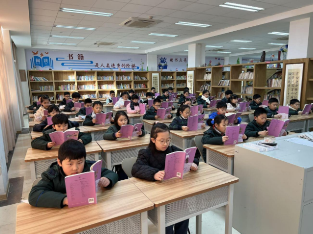 值得一提的是,學校組建教師團隊指導中高年級學生了解作者及寫作背景,通過目錄提取信息、大膽想象情節、體會人物情感等方式,認真做好批注和筆記、簡要復述內容等,讓每一個學生學會閱讀、享受閱讀,全面提升學生的綜合素養和語言文字的應用能力。