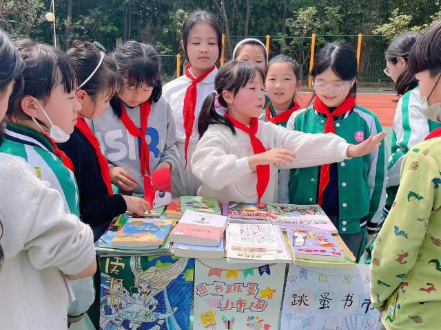 疫情居家學習期間,學校定期組織在線分享,師生一起交流自己的學習內容和閱讀收獲。學校倡導親子閱讀,指導家庭營造良好的讀書氛圍,建好書屋、書柜,定期充實新書,制定親子共讀計劃,組織家庭讀書交流會,并充分利用優質資源,組織“好書我推薦”活動,大家把自己最喜歡的書籍在扉頁上寫上“推薦理由”,集中存放到學校閱覽室,供班級集體借閱,并在年級開展“圖書漂流”。我們還組織系列主題活動,如“小學生詩詞大會”“兒童成語大會”“課本劇展演”等,更組織“著名兒童文學作家進校園”“圖書跳蚤市場”“手抄報展覽”“我是幸福的小書迷”實踐活動等,為學生豐富閱讀、展示才華搭建多樣平臺。