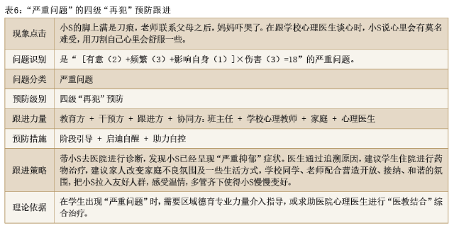 “四級預防”的是嚴重問題,除了求助醫生適當介入,需要教育者進行“階段引導+啟迪自醒+助力自控”,引領學生合理進行尋因、自控、發泄,逐漸緩解問題,達到再犯預防。