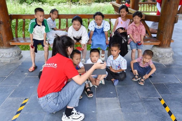 中國教育報-中國教育新聞網(wǎng)訊(通訊員 謝炎伶 向思佳 記者 楊三喜)“甲骨文是漢字的源頭和中華優(yōu)秀傳統(tǒng)文化的根脈,值得倍加珍視、更好傳承發(fā)展。”7月8日上午,衡陽師范學(xué)院“星火筑夢”鄉(xiāng)村振興實踐團(tuán)的志愿者在邵陽市城步苗族自治縣大寨村的標(biāo)志性建筑——侗族長廊里,給當(dāng)?shù)氐暮⒆觽兩狭艘惶锰厥獾恼Z文課。