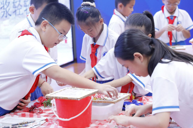 學生們學習制作再生紙