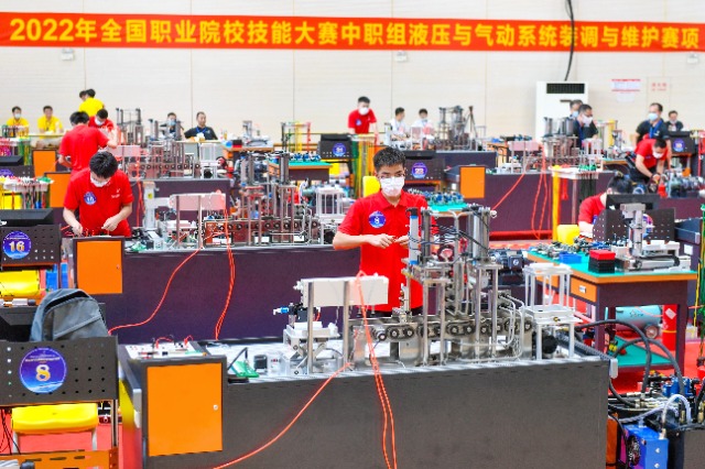2022年8月12日,2022年全國(guó)職業(yè)院校技能大賽液壓與氣動(dòng)系統(tǒng)裝調(diào)與維護(hù)賽項(xiàng)在浙江省湖州市長(zhǎng)興職教中心開(kāi)賽。通訊員 譚云俸 攝