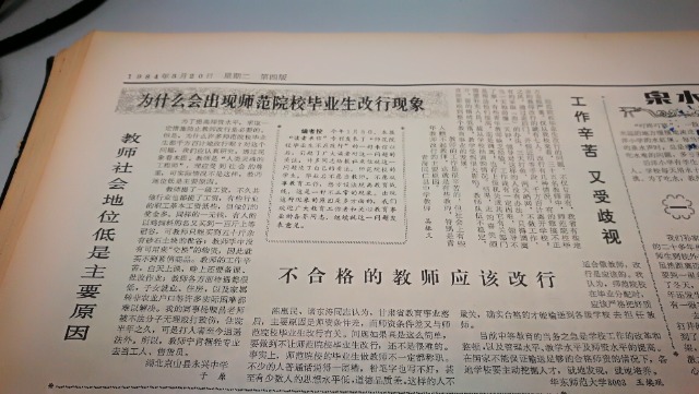 那一年正好有畢業(yè)實習(xí),實習(xí)過程中耳聞目睹的一些事,讓我不由得對師范畢業(yè)生是否都適合當(dāng)老師陷入了沉思。的確,多數(shù)同學(xué)在實習(xí)過程中展示了自己的實力,得到了實習(xí)學(xué)校師生和學(xué)生家長的認(rèn)可。我和另一位年長的余同學(xué)一起在華東師大二附中實習(xí)語文教學(xué),采用了啟發(fā)式教學(xué)的方式,多數(shù)同學(xué)和家長都算認(rèn)可,也有一些家長敏銳感受到了孩子學(xué)習(xí)和作業(yè)情況的變化找到學(xué)校了解情況。但我也聽到不少在其他學(xué)校實習(xí)發(fā)生的事情,諸如學(xué)校管理混亂、學(xué)生厭學(xué)、家長對學(xué)生情況不聞不問、學(xué)校管理層和個別教師敷衍塞責(zé)等,一些在這類學(xué)校實習(xí)的同學(xué)難以正常開展教學(xué)。我們在一些學(xué)校發(fā)現(xiàn),個別學(xué)校一到下午整個教學(xué)活動都會停擺,學(xué)生沒人管,實習(xí)老師沒事干;還了解到個別實習(xí)老師不具備基本的教學(xué)能力,有的嚴(yán)重口吃,有的寫不好一個教案,一堂課上20分鐘就卡殼了,師生都很尷尬。還有一些實習(xí)的學(xué)生課上敷衍了事,課下到處活動,為畢業(yè)分配找關(guān)系,在實習(xí)學(xué)校和同學(xué)中間影響很不好。針對這些現(xiàn)象,我有感而發(fā),連夜寫了一稿,反映了這些實際問題,并提出一些人雖然學(xué)的是師范,但難以在未來勝任教師職責(zé),并不適合當(dāng)老師。《中國教育報》很快以《不合格的教師應(yīng)該改行》為題,發(fā)表了我的這篇來稿。