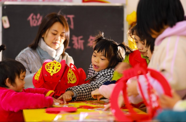 2022年12月31日,貴州省黔西市文峰街道塔山社區工作人員帶領孩子們制作迎新年花燈。通訊員 周訓超 攝