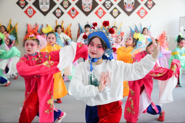 4月10日,江蘇如皋經濟技術開發區第三實驗小學京劇社團的孩子們在練習京劇《水袖》。通訊員 徐慧 攝