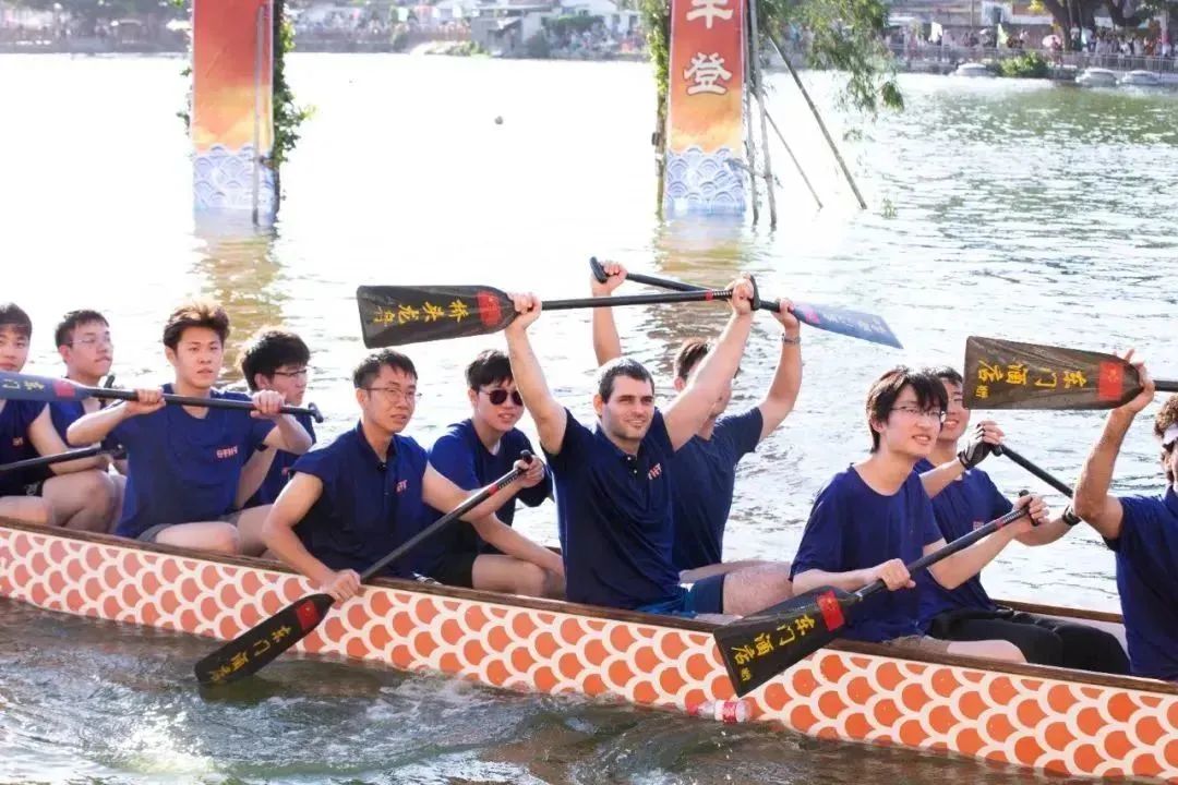 廣以的教師來(lái)自于全球31個(gè)國(guó)家和地區(qū)。為展示中國(guó)文化的深厚底蘊(yùn),學(xué)校還舉行一系列非遺文化交流活動(dòng),包括畢業(yè)典禮舞臺(tái)上的廣東省汕頭市傳統(tǒng)舞蹈、國(guó)家級(jí)非物質(zhì)文化遺產(chǎn)之一的英歌舞;組織中外龍舟隊(duì)參加端午節(jié)龍舟賽等,共同體驗(yàn)非遺魅力。
