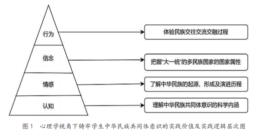 中華民族共同體意識是中國共產黨團結帶領全體中華兒女這一政治行為主體在多民族國家革命、建設、改革與發展過程中個人或集體形成的對“中華民族共同體”這一本體的認知、情感、評價和認同等心理活動的總和。[1]從政治心理學視角來看,引導中小學生鑄牢中華民族共同體意識的過程,是一個“知—情—意—行”循序漸進的發展過程,循此而論,鑄牢中華民族共同體意識的教育實踐價值應涵括以下四個維度。