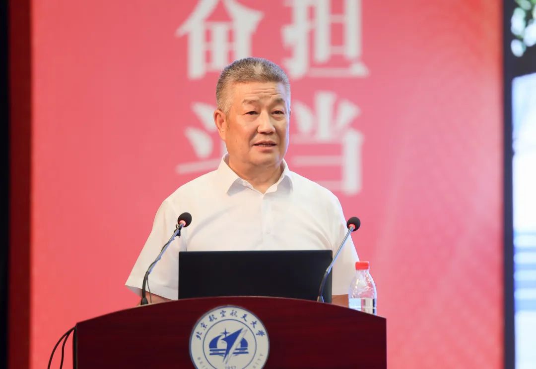 中國教育報-中國教育新聞網訊(記者 梁丹 見習記者 胡若晗)近日,北航校黨委書記趙長祿走進《習近平新時代中國特色社會主義思想概論》課堂,為新生講授題為“傳承以空天報國為內核的北航精神,在強國建設、民族復興偉業中綻放青春光彩”的“思政第一課”。近400名2023級本科新生及部分其他年級學生參加了課程。