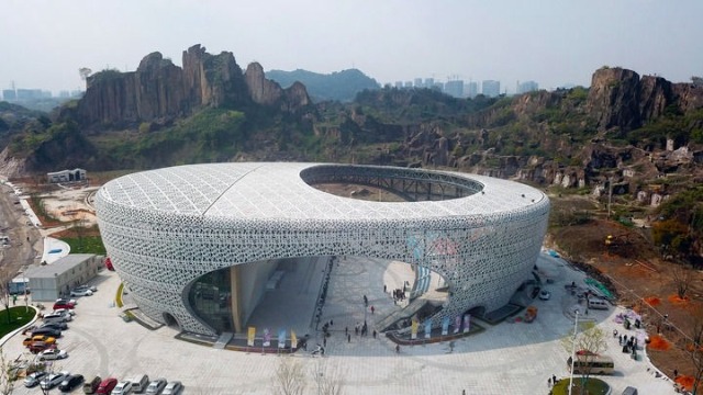 現代建筑和自然環境有機融合的背后,是廢棄礦山經過建設開發,華麗變身“巖壁芭蕾”國際賽場的綠色轉型故事。
