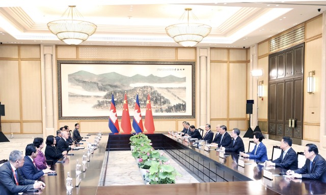 習近平強調,今年是我提出親誠惠容理念10周年。中柬關系集中體現了這一理念以及中國堅持與鄰為善、以鄰為伴的周邊外交方針。中國支持柬埔寨走符合本國國情的發展道路,支持柬埔寨實現穩定和發展,支持柬埔寨在國際和地區舞臺發揮重要作用。雙方要保持高層交往,深化互利合作,扎實推進“鉆石六邊”合作架構,推動“工業發展走廊”和“魚米走廊”建設盡快取得可視成果,服務各自國家現代化事業。雙方要持續推進教育、文化、青年等領域交流合作,讓中柬友好更加深入人心。