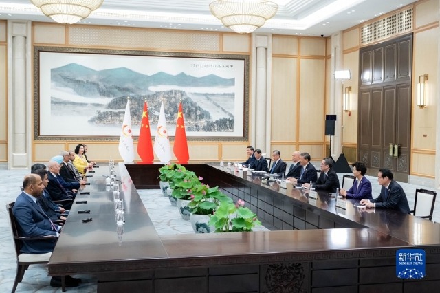 蔡奇、丁薛祥、王毅、諶貽琴等參加會見。