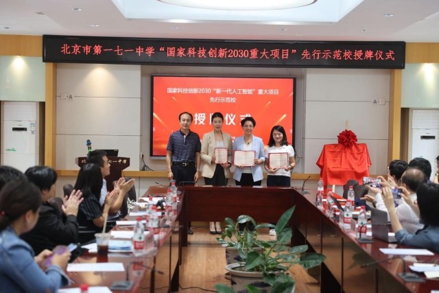 金秋九月,丹桂飄香。近日,“國(guó)家科技創(chuàng)新 2030——新一代人工智能重大項(xiàng)目—復(fù)雜版面手寫圖文識(shí)別及理解關(guān)鍵技術(shù)研究”先行示范校授牌儀式在北京市第一七一中學(xué)舉行,授牌儀式后,與會(huì)專家就“AI賦能高品質(zhì)課堂創(chuàng)新改革”這一議題進(jìn)行了研討。
