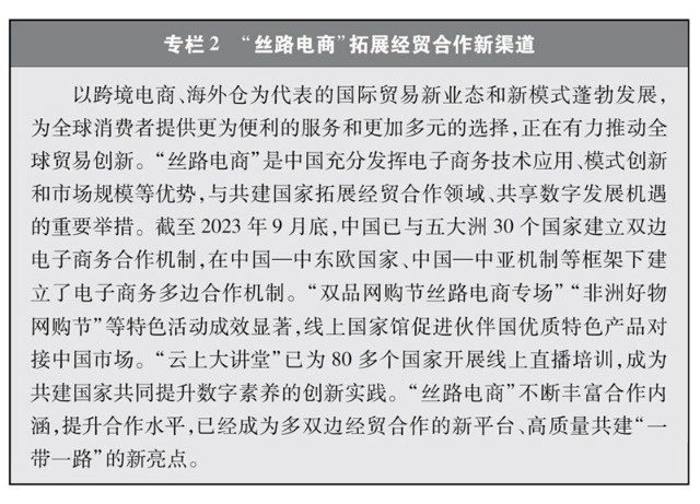 “數字絲綢之路”建設亮點紛呈。共建國家加強數字領域的規則標準聯通,推動區域性數字政策協調,攜手打造開放、公平、公正、非歧視的數字發展環境。截至2022年底,中國已與17個國家簽署“數字絲綢之路”合作諒解備忘錄,與30個國家簽署電子商務合作諒解備忘錄,與18個國家和地區簽署《關于加強數字經濟領域投資合作的諒解備忘錄》,提出并推動達成《全球數據安全倡議》《“一帶一路”數字經濟國際合作倡議》《中國-東盟關于建立數字經濟合作伙伴關系的倡議》《中阿數據安全合作倡議》《“中國+中亞五國”數據安全合作倡議》《金磚國家數字經濟伙伴關系框架》等合作倡議,牽頭制定《跨境電商標準框架》。積極推進數字基礎設施互聯互通,加快建設數字交通走廊,多條國際海底光纜建設取得積極進展,構建起130套跨境陸纜系統,廣泛建設5G基站、數據中心、云計算中心、智慧城市等,對傳統基礎設施如港口、鐵路、道路、能源、水利等進行數字化升級改造,“中國-東盟信息港”、“數字化中歐班列”、中阿網上絲綢之路等重點項目全面推進,“數字絲路地球大數據平臺”實現多語言數據共享。空間信息走廊建設成效顯著,中國已建成連接南亞、非洲、歐洲和美洲的衛星電信港,中巴(西)地球資源系列遙感衛星數據廣泛應用于多個國家和領域,北斗三號全球衛星導航系統為中歐班列、船舶海運等領域提供全面服務;中國與多個共建國家和地區共同研制和發射通信或遙感衛星、建設衛星地面接收站等空間基礎設施,依托聯合國空間科技教育亞太區域中心(中國)為共建國家培養大量航天人才,積極共建中海聯合月球和深空探測中心、中阿空間碎片聯合觀測中心、瀾湄對地觀測數據合作中心、中國東盟衛星應用信息中心、中非衛星遙感應用合作中心,利用高分衛星16米數據共享服務平臺、“一帶一路”典型氣象災害分析及預警平臺、自然資源衛星遙感云服務平臺等服務于更多共建國家。