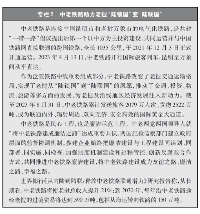 經濟走廊和國際通道建設卓有成效。共建國家共同推進國際骨干通道建設,打造連接亞洲各次區域以及亞歐非之間的基礎設施網絡。中巴經濟走廊方向,重點項目穩步推進,白沙瓦-卡拉奇高速公路(蘇庫爾至木爾坦段)、喀喇昆侖公路二期(赫韋利揚-塔科特段)、拉合爾軌道交通橙線項目竣工通車,薩希瓦爾、卡西姆港、塔爾、胡布等電站保持安全穩定運營,默拉直流輸電項目投入商業運營,卡洛特水電站并網發電,拉沙卡伊特別經濟區進入全面建設階段。新亞歐大陸橋經濟走廊方向,匈塞鐵路塞爾維亞貝爾格萊德-諾維薩德段于2022年3月開通運營,匈牙利布達佩斯-克萊比奧段啟動軌道鋪設工作;克羅地亞佩列沙茨跨海大橋迎來通車一周年;雙西公路全線貫通;黑山南北高速公路順利建成并投入運營。中國-中南半島經濟走廊方向,中老鐵路全線建成通車且運營成效良好,黃金運輸通道作用日益彰顯;作為中印尼共建“一帶一路”的旗艦項目,時速350公里的雅萬高鐵開通運行;中泰鐵路一期(曼谷-呵叻)簽署線上工程合同,土建工程已開工11個標段(其中1個標段已完工)。中蒙俄經濟走廊方向,中俄黑河公路橋、同江鐵路橋通車運營,中俄東線天然氣管道正式通氣,中蒙俄中線鐵路升級改造和發展可行性研究正式啟動。中國-中亞-西亞經濟走廊方向,中吉烏公路運輸線路實現常態化運行,中國-中亞天然氣管道運行穩定,哈薩克斯坦北哈州糧油專線與中歐班列并網運行。孟中印緬經濟走廊方向,中緬原油和天然氣管道建成投產,中緬鐵路木姐-曼德勒鐵路完成可行性研究,曼德勒-皎漂鐵路啟動可行性研究,中孟友誼大橋、多哈扎里至科克斯巴扎爾鐵路等項目建設取得積極進展。在非洲,蒙內鐵路、亞吉鐵路等先后通車運營,成為拉動東非乃至整個非洲國家縱深發展的重要通道。